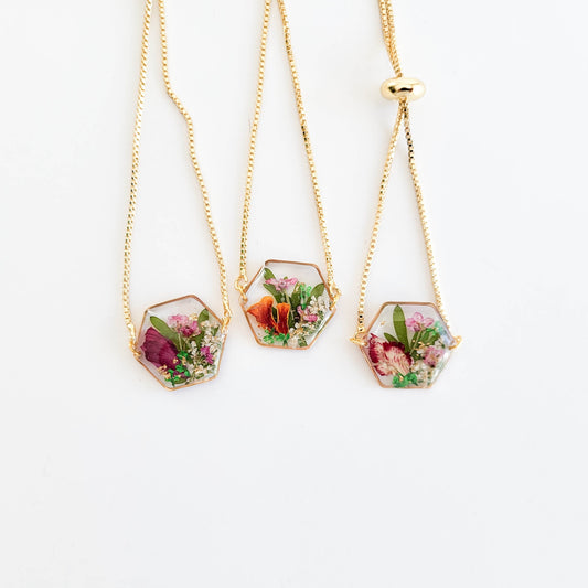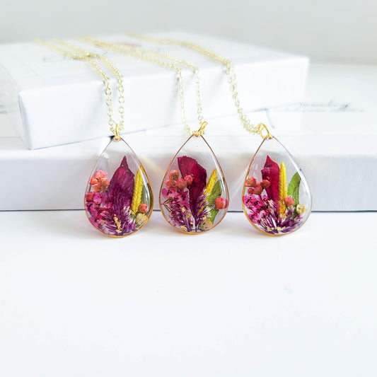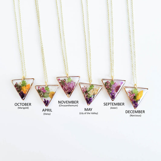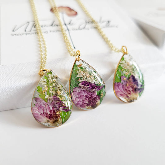 Birth month flower necklace, unique gift for her Birthday, pressed flower necklace, dried flower resin jewelry, botanical jewelry, nature