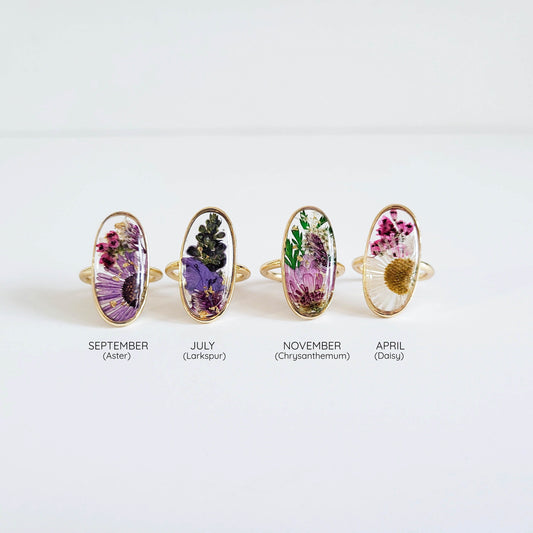 Personalized birth flower ring, birth month flower jewelry, personalized birthday gift for her, nature inspired ring, custom resin ring