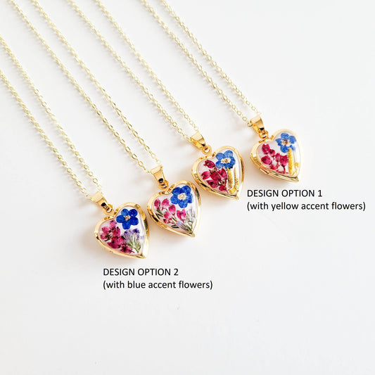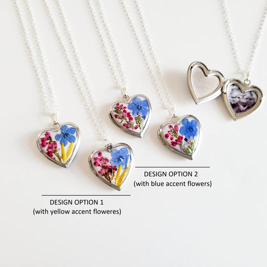 Forget me not Heart locket necklace, custom charm necklace, personalized locket necklace, gifts for women, handmade gift, gift for mom